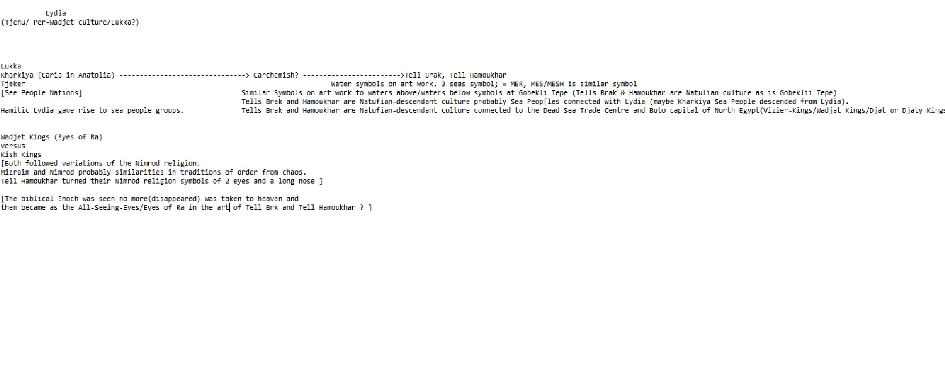 Atlas/Atlantis influence <----> Sea People", or the ancestors of the Sea People. Some Sea People groups had a Mesopotamian origin/Saehlian origin/Persian Gulf Trade Centre origin.