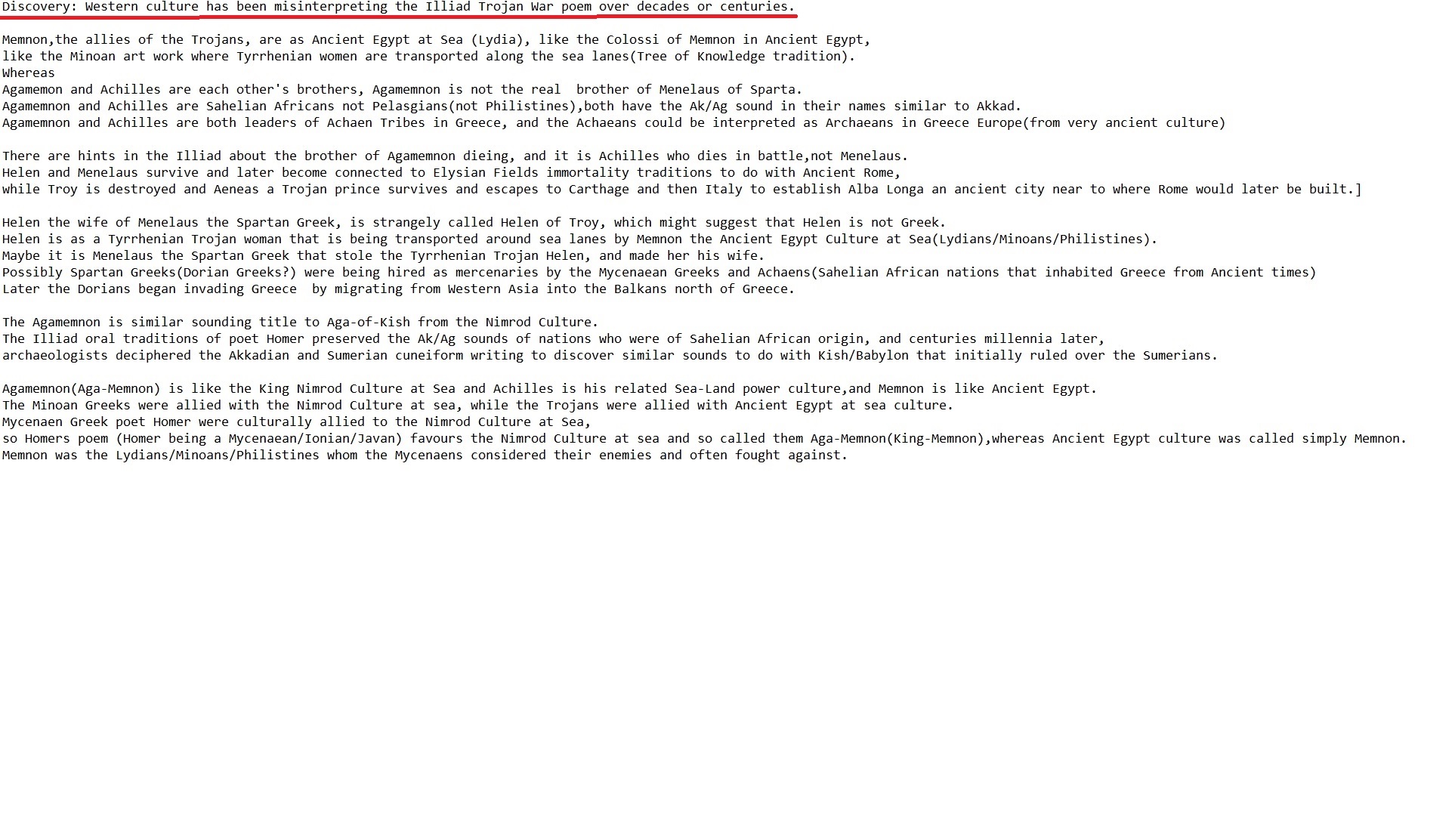 Brief Answer: Names of Sumerian cities are older than Sumer,bible traditions suggest an empire older than Sumer,